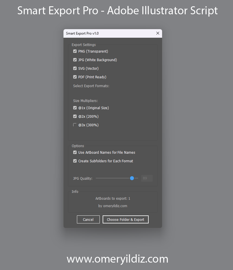 Eğitim Smart Export Pro – Adobe Illustrator Script By omeryildiz Posted on Şubat 12, 2026 3 min read 80 views Smart Export Pro – Adobe Illustrator Script Ücretsiz İndir Smart Export Pro, Adobe Illustrator’da tüm artboard’larınızı tek … Okumaya devam et... Share By omeryildiz 0